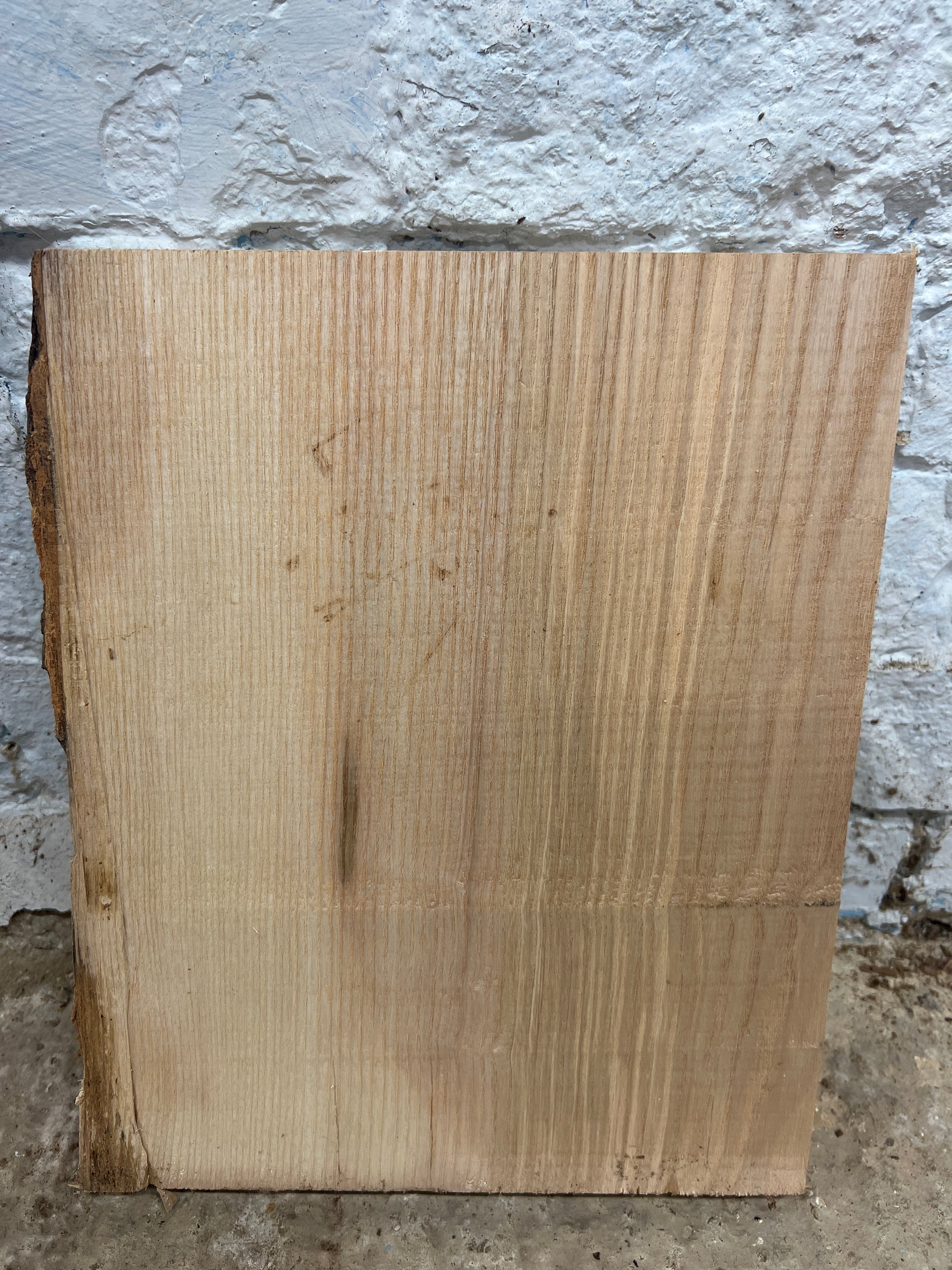 Notes: bark on live edge, crack on live edge and some at the bottom of the board